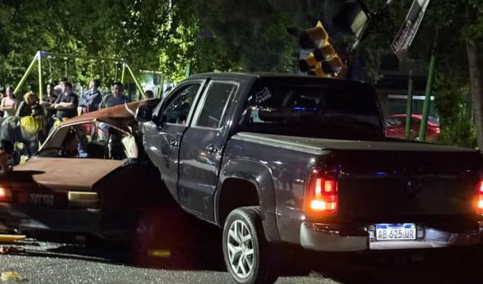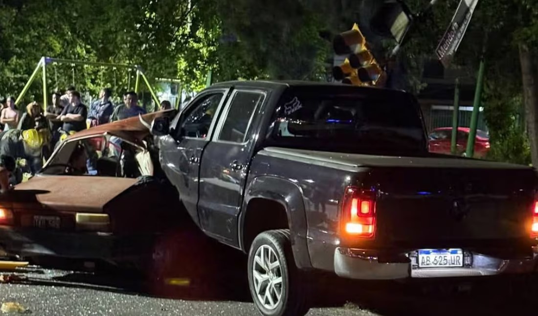 Según informaron los medios locales, la camioneta Volkswagen Amarok embistió al Renault 12 y quedó incrustada en el vehículo.