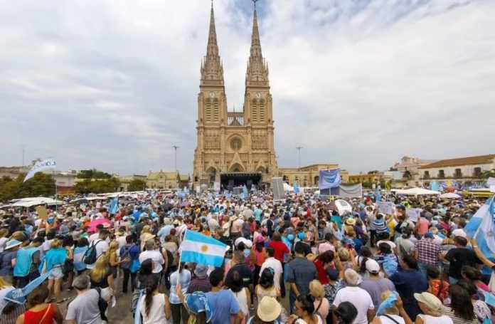 Una multitud devota marchó a Luján más de sesenta kilómetros hasta la Basílica de la Virgen Patrona de la Argentina.