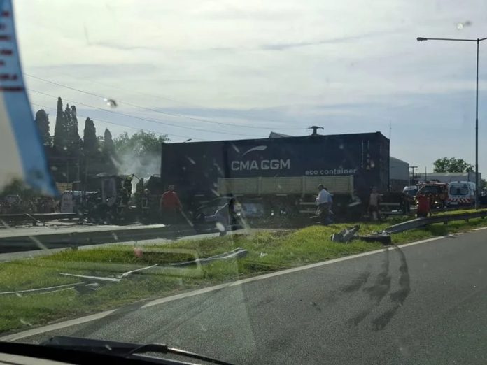 Uno de los automóviles quedó aplastado bajo los camiones y provocó el inicio de un incendio en el motor del coche que también complicó la visibilidad en la zona. Tras un intenso operativo, se cortó el tránsito en toda la calzada y se desvía a los coches por Colectora Sur y retoman en el puente de Otamendi.