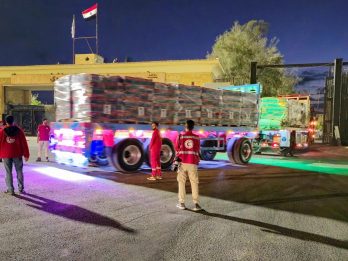 Mientras Israel y Hamás negocian la liberación de los rehenes, cientos de camiones con alimentos y vestimenta ingresaron a la franja desde Egipto.