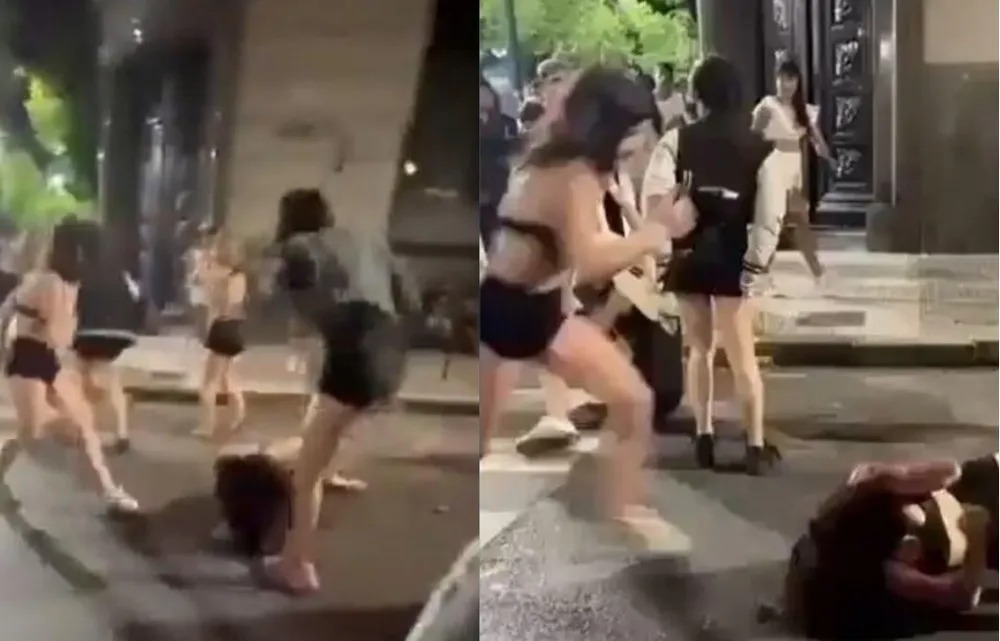 En los videos que se difundieron en redes desde el sábado se veían violentas y brutales imágenes de golpes, patadas en las costillas, tironeos en las cabelleras, corridas y gritos. Los escenarios que se identifican en las filmaciones son las inmediaciones del acceso al local nocturno y hasta una cuadra de distancia de ese lugar.